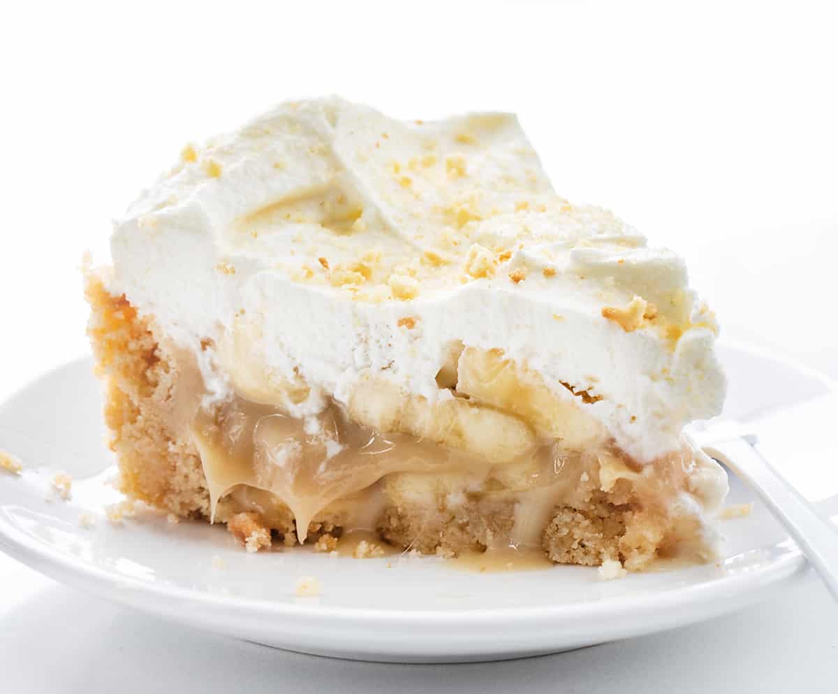Banoffee Pie is a rich and decadent no-bake dessert made with a buttery shortbread crust, bananas, and a toffee sauce filling, topped with whipped cream. It is a delicious and indulgent dessert that combines sweet, creamy, and subtle banana flavors for a perfect balance of tastes and textures!