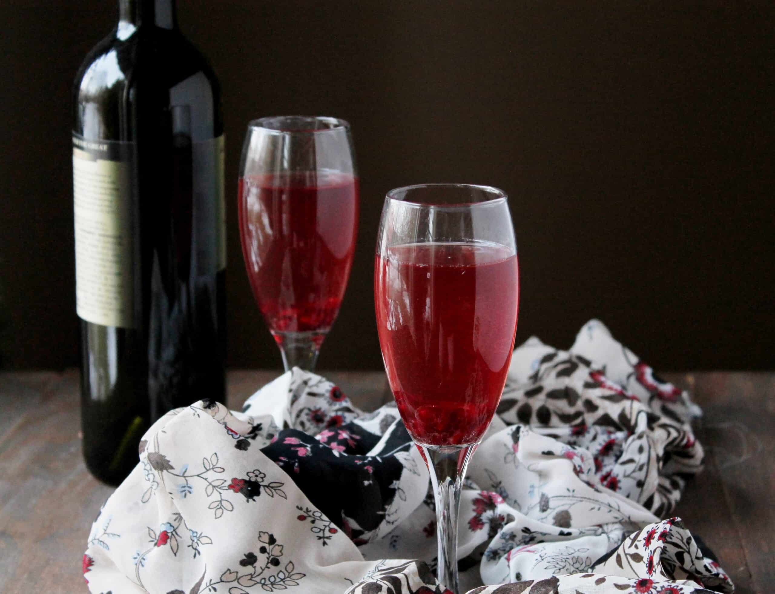 - Pour 0.25 cup of chilled pomegranate juice into each champagne flute.
