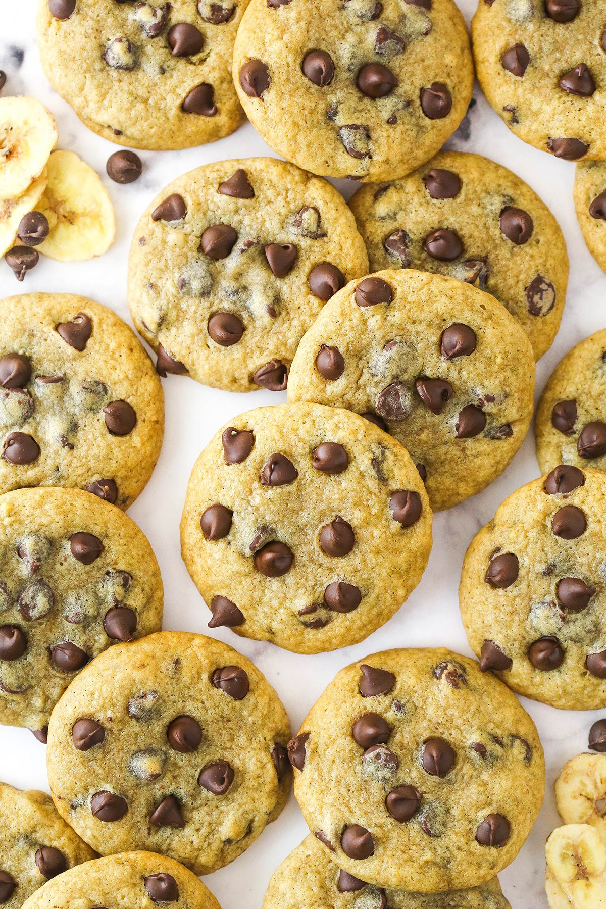 - Use a cookie scoop to create cookie dough balls that are 2 tablespoons in size. Press some additional chocolate chips onto the top of the cookie dough balls, if you’d like. The cookie dough is pretty sticky, even when cold. As it warms up, it gets quite sticky, so try to work quickly and pop the cookie dough back in the fridge, if needed.