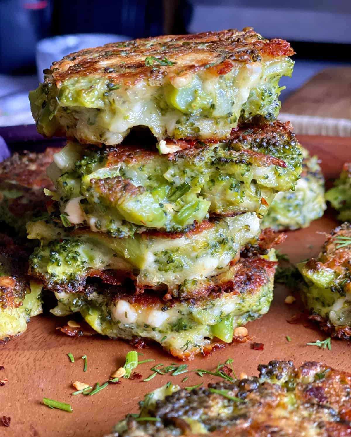 - In a large skillet, heat 2-3 tbs olive oil until hot. Add the broccoli balls and flatten them out a little. Lower heat to medium and cook for 6 minutes. Flip them over and flatten them again with the back of your spatula. Cook another 6 minutes. Lower heat if they are getting too dark brown. You want them golden brown.