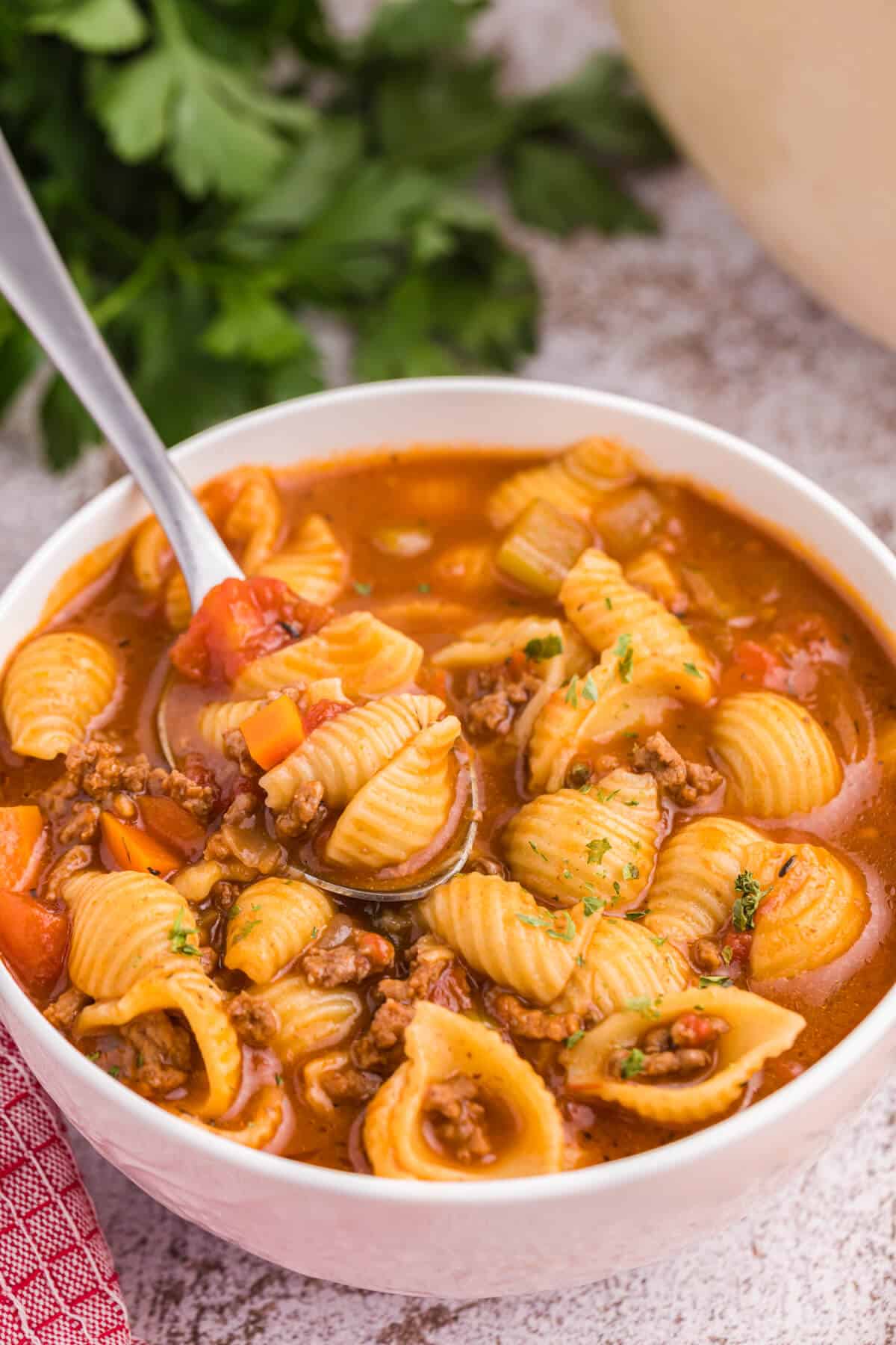 - Once beef is browned, add in the rest of the ingredients and stir to combine.