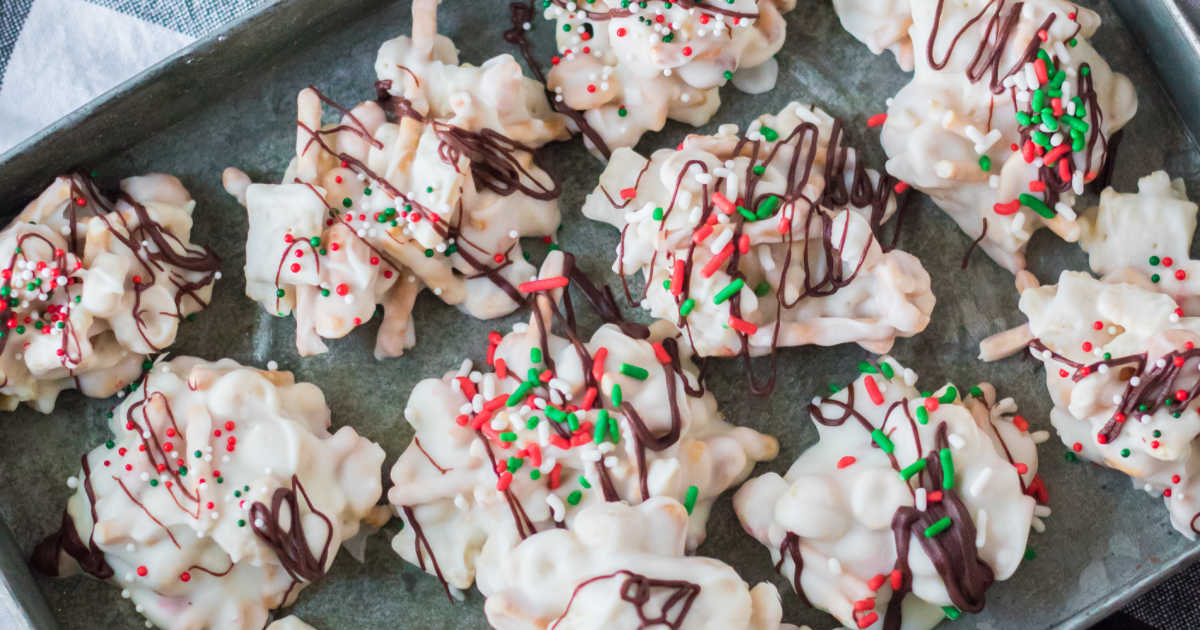 5. Drizzle the melted chocolate over the candy and top with holiday sprinkles.