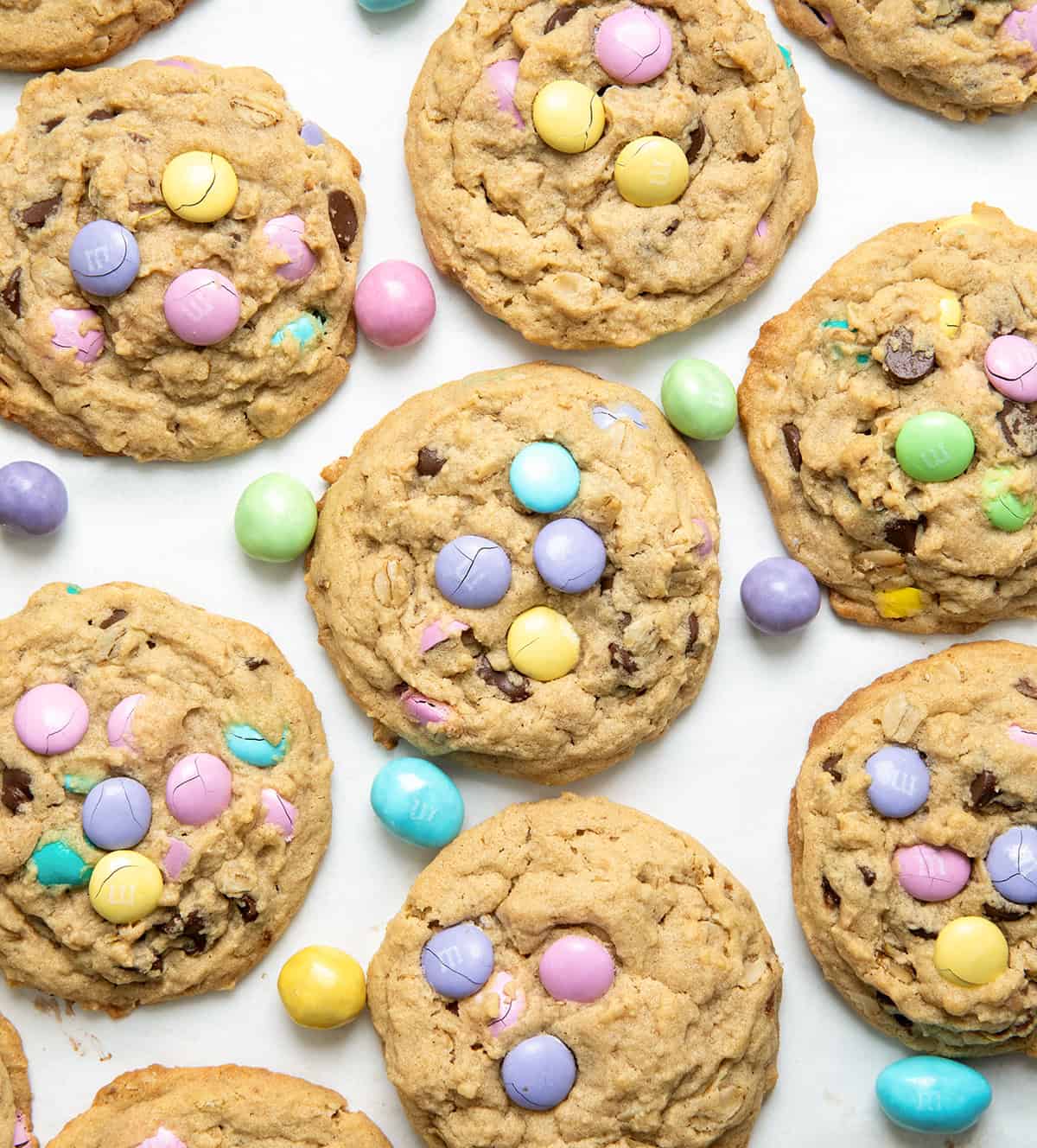- Using a 2-tablespoon scoop, drop dough onto the lined baking sheets about 2 inches apart. Top with extra Easter M&M's (optional).