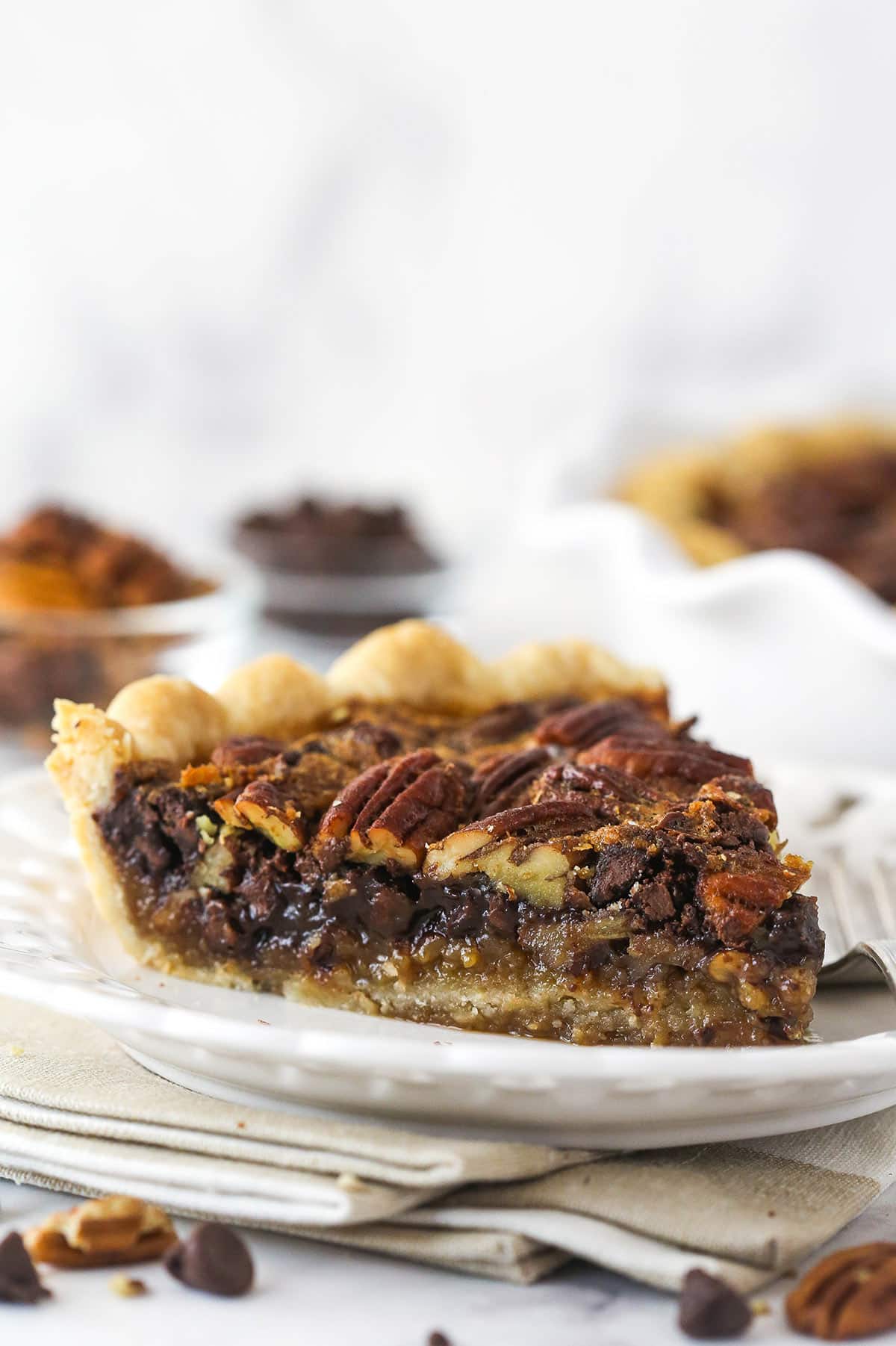 - Pour the syrup mixture over the pecans and chocolate chips, allowing them to float to the top.