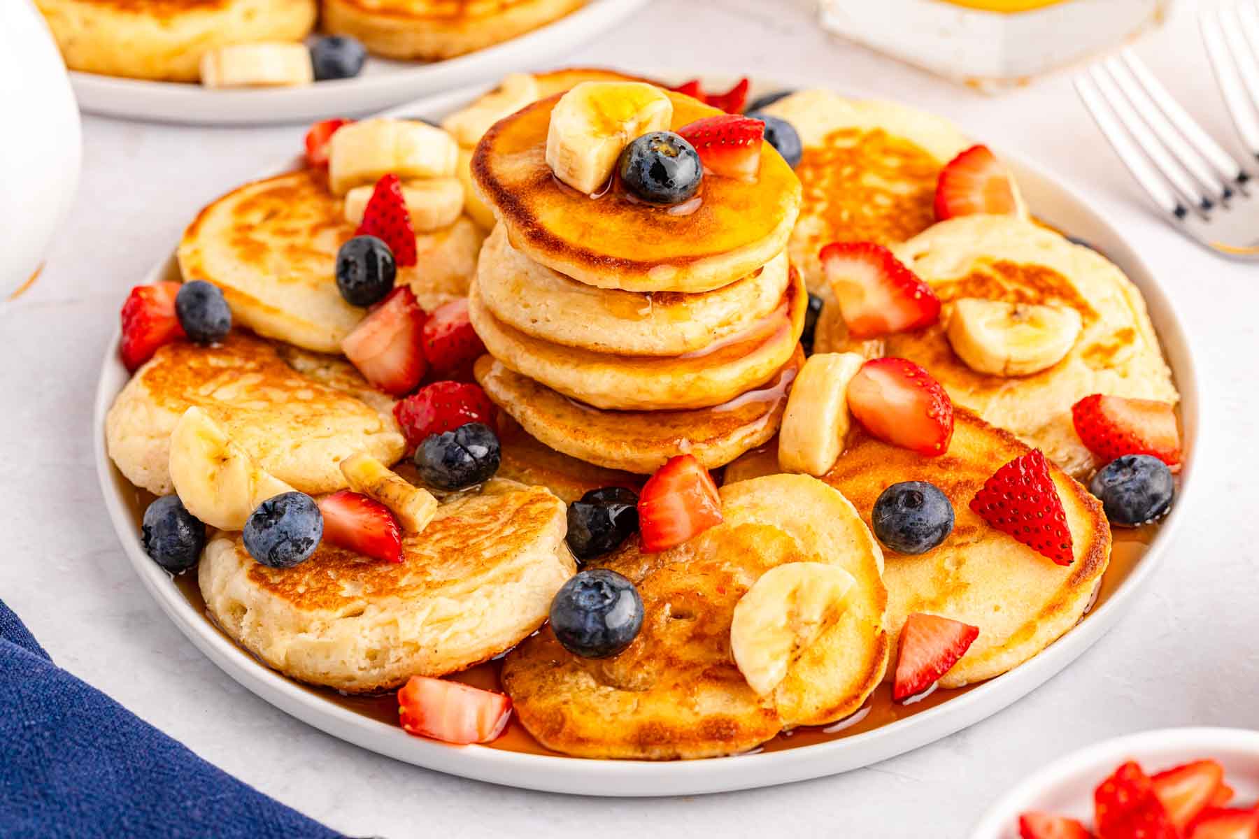 - Remove from the hot pan and place on a plate until you’re ready to serve. Serve with your favorite pancake toppings while warm.