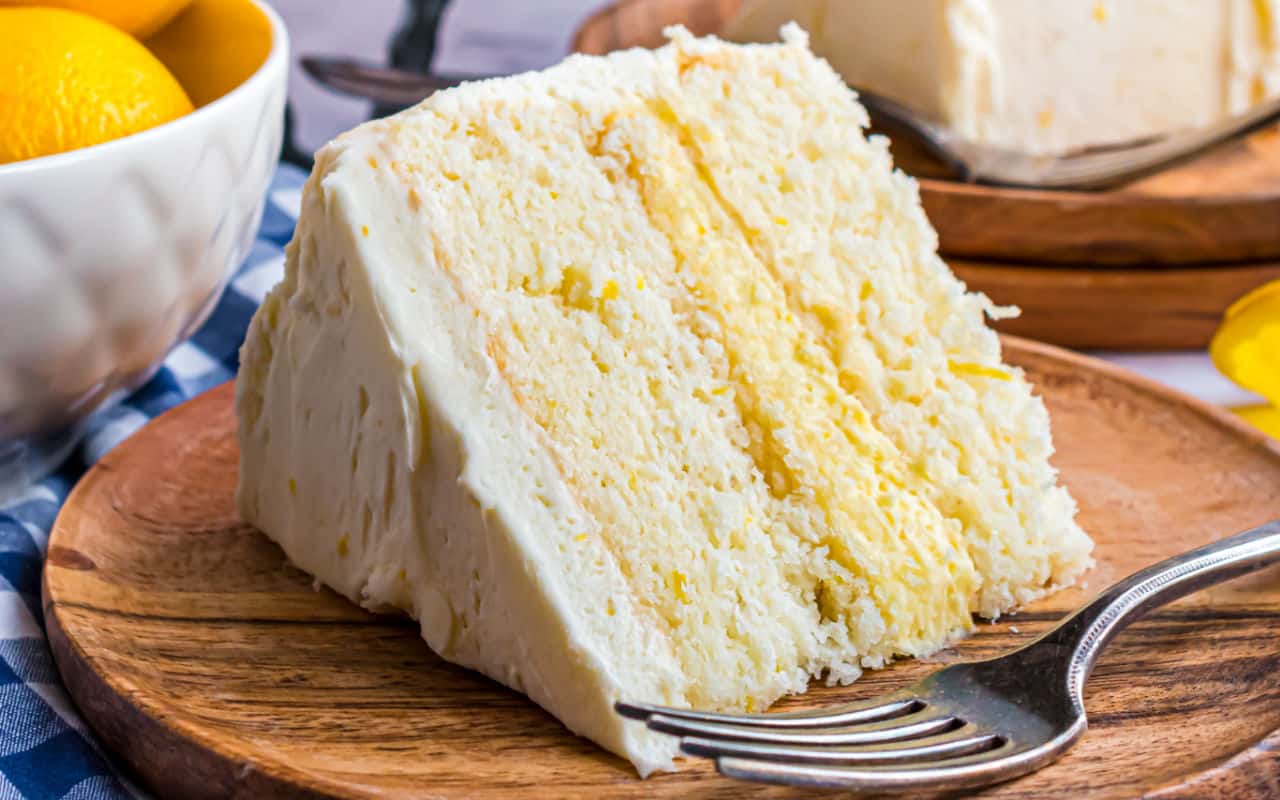A delicious homemade lemon cake with creamy lemon filling and lemon curd frosting, perfect for any special occasion.