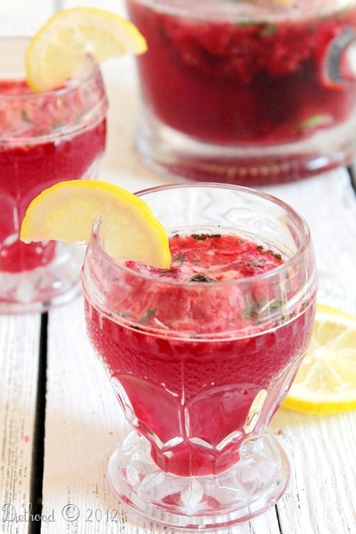 - Place the raspberries and mint in a pitcher and muddle together. If you don't have a muddler, use a potato masher.